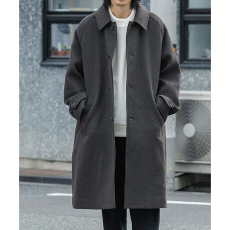 二重織でふっくらとした肉感の生地を、毛足のあるビーバー仕立てで光沢感のある素材を使用しました。体型に囚われずナチュラルで綺麗なショルダーラインがでるラグランスリーブ仕様。生地をたっぷりととった美しいAラインシルエットがバルカラーコートの醍醐味です。襟元のストラップで防寒性も抑えた今季マストバイな王道コートは今シーズン外せない。