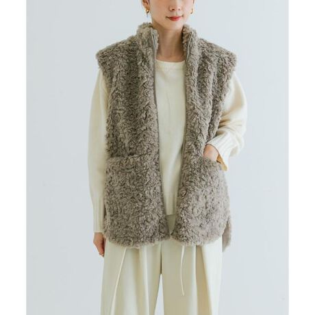 お手持ちのアイテムに重ねるだけでスタイリングをアップデートしてくれるボアベスト。カジュアルな雰囲気を纏いながらも、落ち着いた大人のカラーに仕上げました。