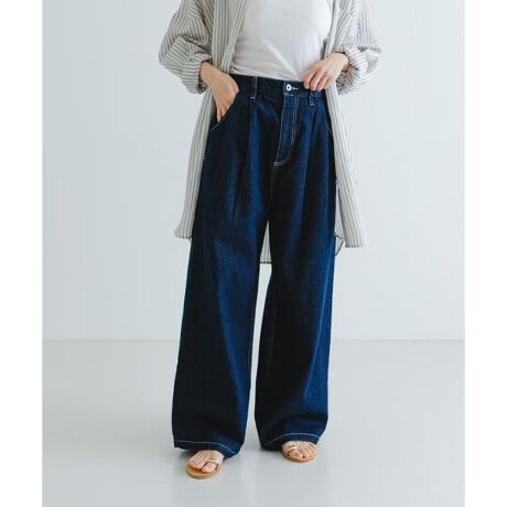 シンプルながらも存在感のある、ハイウエストのツータックワイドデニムパンツ。