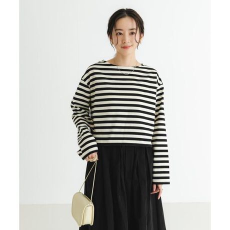 コンパクトな着丈と長めのスリーブが特徴的な、リラックス感のあるシルエットのカットソー。