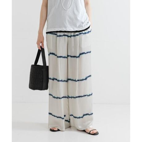 シンプルなTシャツと合わせるだけで夏らしいスタイルに。同素材のシルクミックスボーダープリントワンピース(URA5-26C010)とのレイヤードもおすすめです。