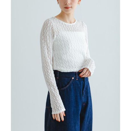 ジャケットや、オールインワンのインナーとして活躍。スウェットなどとレイヤードし、袖口からレースをのぞかせて着用するのもおすすめです。