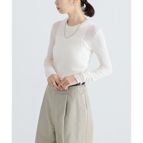 繊細なリブ生地を採用し、程よい厚みで伸縮性にも優れた安心感のある着心地。