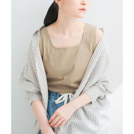 ジャケットやカーディガンのインナーとしても最適。スクエアネックが、首まわりをすっきりと見せてくれます。