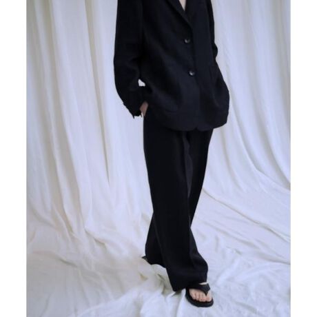 太番手の糸で甘く織られた、雰囲気のあるリネン素材でお作りしたパンツは、程よくゆとりのあるストレートシルエットで横から見ても綺麗な形に仕立てました。