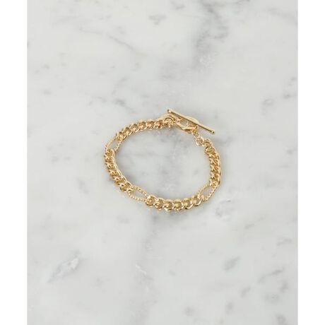 特徴的なチェーンがコーディネートにアクセントを添えるブレスレッド。