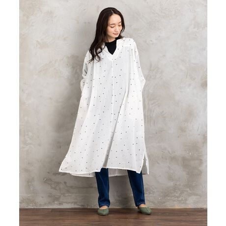ドット柄を散りばめた優しい印象のコットンワンピース。
