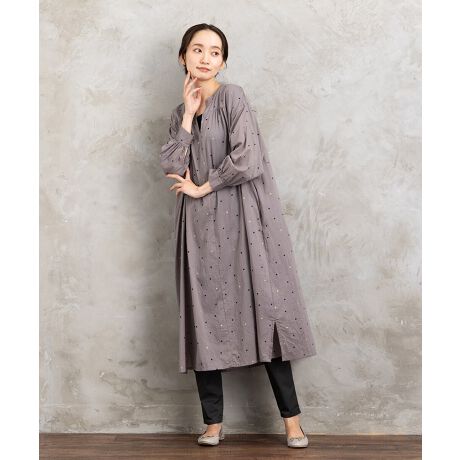 ドット柄を散りばめた優しい印象のコットンワンピース。
