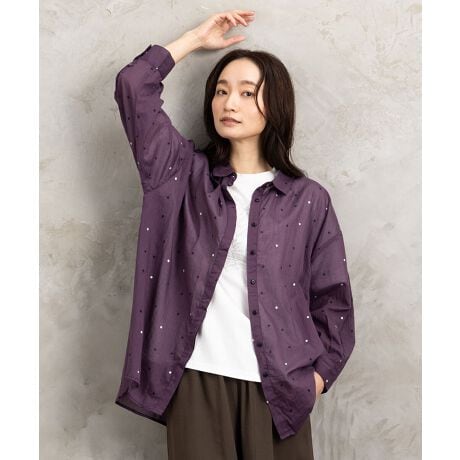 【ドット柄で華やぎをプラス。大人の抜け感シャツブラウス】