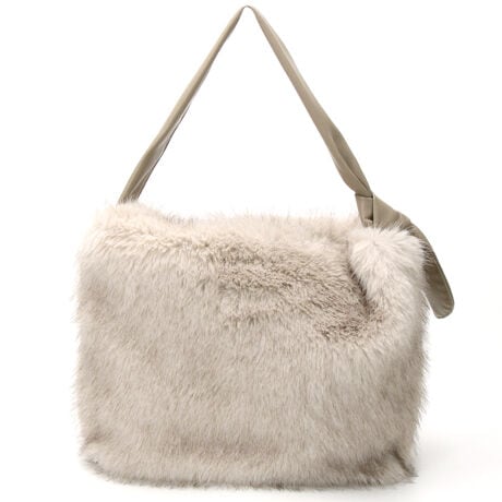 片側結びのリボンが大人っぽい雰囲気のファーバッグ。