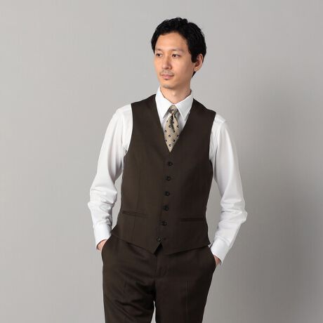 ジャケットの第一ボタンを留めた際にベストのVゾーンが美しく見える位置に設定しています。