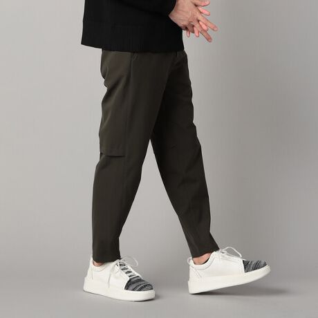 スマートなシルエットと快適な着用感を両立したテーパードパンツです。