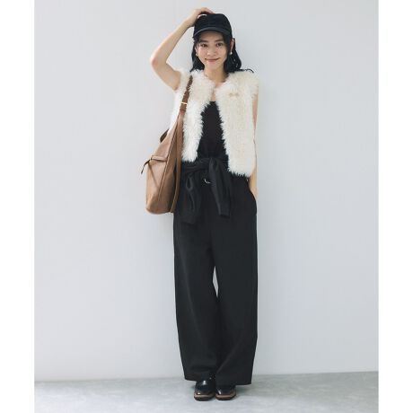 体型を拾わない美しいワイドシルエットや、ベルトでウエストをマークすることで、シルエットにメリハリが生まれ、、スタイルアップを演出します。