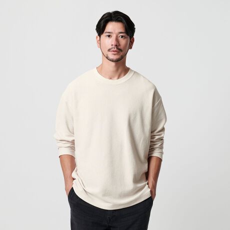 編地に表情があるのでニットのように品良く見えるのも特徴。
