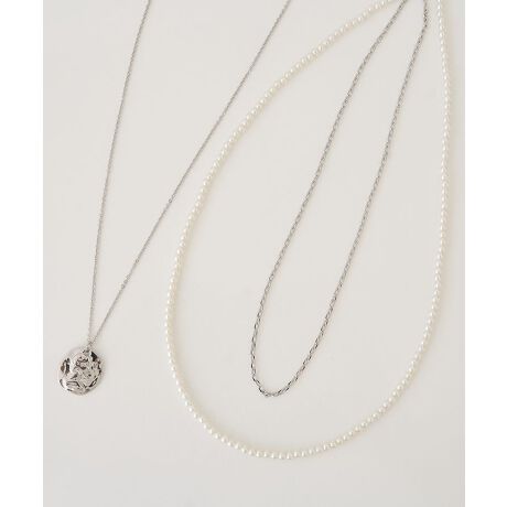SET2点パールチェーンネックレス+コインモチーフネックレス