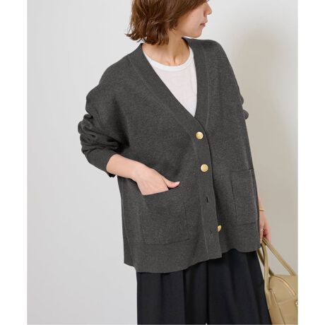 ◆ムード感の高いゴールドメタルボタンがポイントのカーディガン