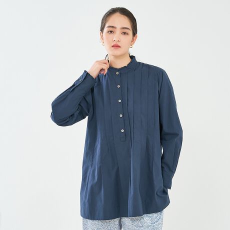 身頃にランダムタックを施した1枚で存在感のあるブラウスです。