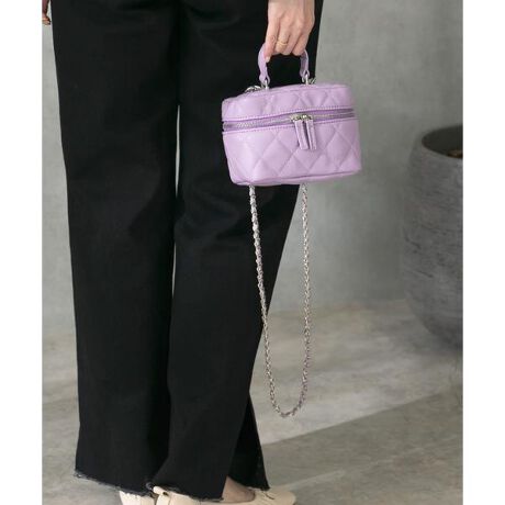 コロンとしたフォルムが可愛い、バニティ型チェーンバッグ。クラシカルな印象のキルティングデザインがポイントです。口元が大きく開くため、中身の出し入れもしやすい仕様に。シンプルコーデに合わせるだけでトレンド感UP。アクセサリー感覚で持てる、今季おすすめのキルティングチェーンバッグです。