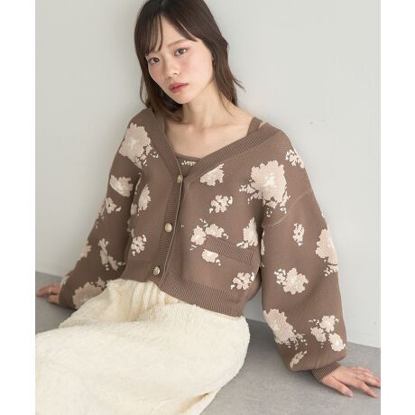 スタイリングの主役に最適なジャカードニットセット。モール調ニットを織り交ぜて表現したフラワーモチーフがフェミニンなデザインです。裾リブのコンパクトなビスチェトップに、ボリュームスリーブが印象的な短丈カーディガンのアンサンブル。どちらも単体使用出来、様々なスタイリングに活躍してくれる今季おすすめのアイテムです。透け感[なし]