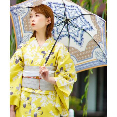 秋の七草の代表である萩を題材に、可愛らしい大正期のレトロロマン調に仕上げた復刻柄。植物で季節を先取りした、他とは一線を画す柄は大人の女性にぴったりです。曲線が多く柔らかい印象の柄を生かして、地色は思い切った華やかなイエローを別注。ありそうでなかった、洒落感たっぷりの一枚に仕上げました。アクセントに濃淡をつけたグレーを配置することで、年齢問わず着られる上品な印象を演出します。元気な印象のイエローには、シックなカラー小物を合わせてコーディネートを引き締めるのがおすすめ。