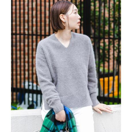 女性らしさ漂う、Vネック仕様の贅沢なファーニットが登場。上質なフォックス混ならではのふっくらとした風合いが、スタイリングに柔らかなニュアンス感を演出します。幅広いボトムと合わせやすいサイズ感やシルエットも魅力ポイント◎サイドにスリットを施すことで、カットソーとのレイヤードもサマになる一着です。保温力も高くシンプルで飽きのこないデザインは、大人のための上質なアイテムに。