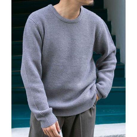 ワッフル編みの凹凸感のあるデザインでやや肉感のある生地感は保温性も抜群。