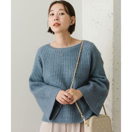【女性らしいフレア袖が魅力的な、ワイドリブニット】