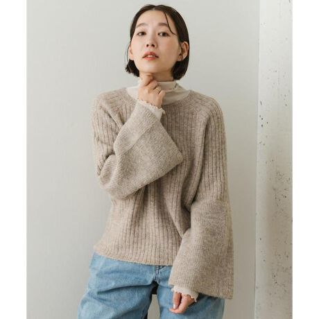 【女性らしいフレア袖が魅力的な、ワイドリブニット】