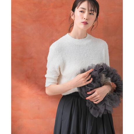 ふわふわとした柔らかな着心地のシャギーニットが登場。伸縮性があり、軽量なので快適な着心地を実現します。トップスアウトも様になる程良い丈感で、ボトムを選ばずお召し頂けるサイズ感に。ハイネック仕様×ハーフスリーブで、着ぶくれしないデザインにも拘りました。スタイリングに馴染むWHITE、キレイな色の鮮やかなORANGE・BLUEの2色展開でご用意。