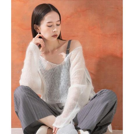 しっとり柔らかいモヘア素材を使用した、軽い着心地のシアーニットが登場。シアー感を活かした、インナーとのレイヤードスタイルが様になる一着です。深めのVネック仕様は、お顔をすっきりと見せてくれシャープな印象に。腰周りを覆う着丈とリラックス感のあるサイジングで、こなれた着こなしが叶います。ニュアンシーな雰囲気漂うwhite、差し色となるyellow・blueを加えた3色展開でご用意。
