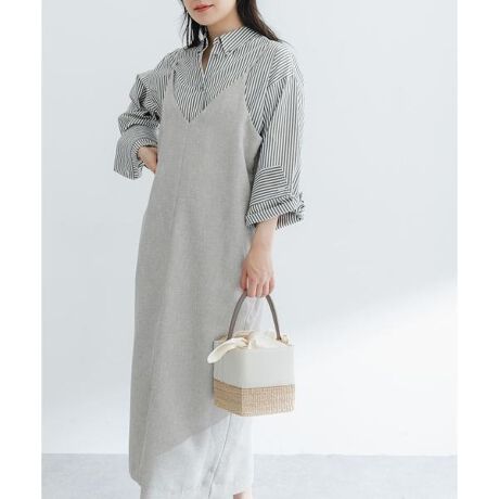 【爽やかな風合いが女性らしい、リネンライクキャミワンピース】