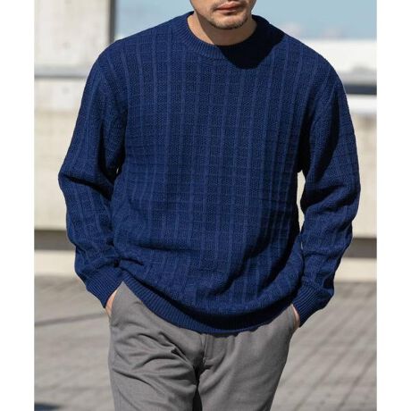 ミドルゲージのしっかりとした中肉生地を立体感のあるワッフル編みに仕上げ、シンプルながらも表情豊かなデザインとなっております。