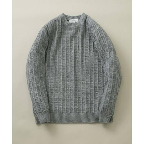 ミドルゲージのしっかりとした中肉生地を立体感のあるワッフル編みに仕上げ、シンプルながらも表情豊かなデザインとなっております。
