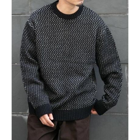 『XLサイズあり』バーズアイ柄クルーネックニット