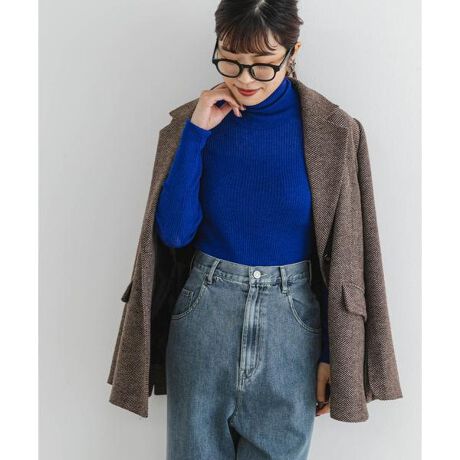 【着こなしに女性らしさをプラスする、万能シアーリブタートルニット】