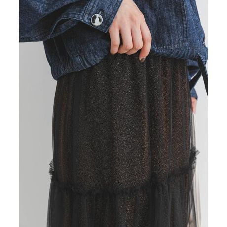 【贅沢なラメ感×軽やかな着こなしのチュールティアードスカート】