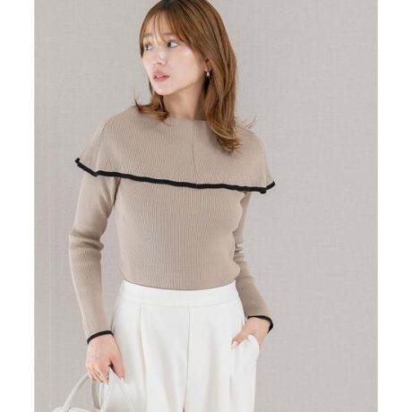 【レディライクな着こなしにぴったりなバイカラーケープニット】