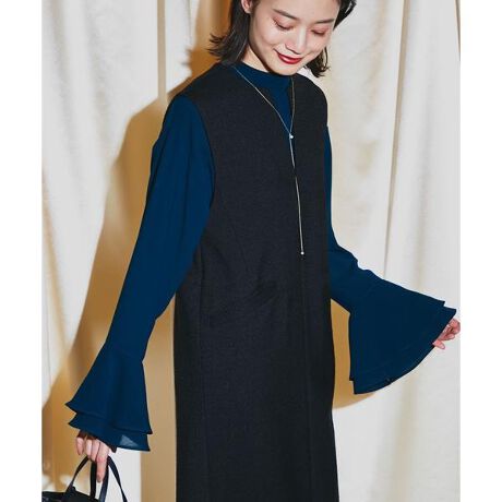 印象的なフレアスリーブカフスが魅力的なブラウス。落ち感のある生地を使用しているため、綺麗めな印象を演出します。少し長さのある着丈×サイドスリットを採用し、アウトスタイルも様になる一着に。バック釦仕様のため、着脱も難なくお召し頂けます。レイヤード使用でも映えるデザインで、お仕事やお呼ばれにもピッタリな華やぎアイテムに。