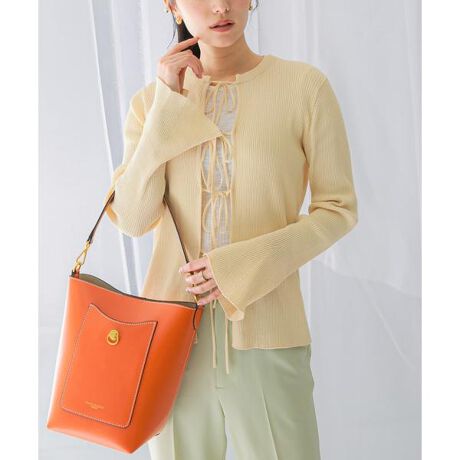 フロントリボンディテールが目を惹く、旬なカーディガンが登場。リボンを華奢にする事で繊細さを演出し、程良い大人の甘さを表現しました。抜け感漂う袖口フレア×スリット仕様で設計し、身体にフィットし過ぎないサイジングに。プルオーバーとしても、カーディガンとしても着用可能な万能アイテムです。シアーカットソーやワンピースとのレイヤードスタイルもお勧め。