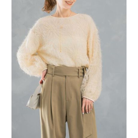 繊細な毛足感が特徴のシャギーブラウスが登場。チュールレース地にフラワーモチーフの素材が新鮮な印象です。ボリューム感のあるお袖やコンパクトな着丈もこだわりポイント◎シーズンライクで活躍し、デイリーのみならずお呼ばれやちょっとしたお食事にも活躍します。同素材のフラワーチュールシャギースカート(品番:RA47-25S703)との、セットアップコーデもお勧め。