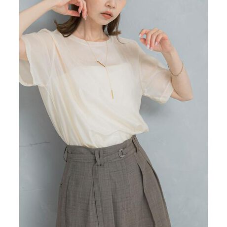 光沢のあるブライト糸と、ほんのり透け感のある素材で仕立てた大人のためのシアーカットソー。さらりとした質感が心地良く、見た目も着心地も清涼感のある印象に仕上げました。シンプルながらも優しいシアー感が抜け感と上品さをプラスし、ワイドパンツやロングスカートに合わせるだけで旬なスタイリングに。