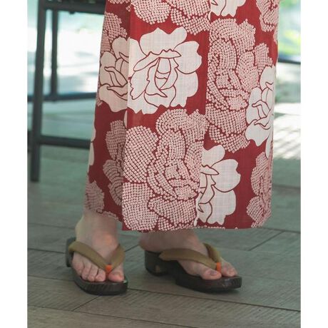 ROSSOオリジナルの浴衣に合わせて、京都の老舗着物メーカーに別注した婦人下駄。鼻緒の素材・カラーを一から選定し、女性らしい印象に仕上げました。