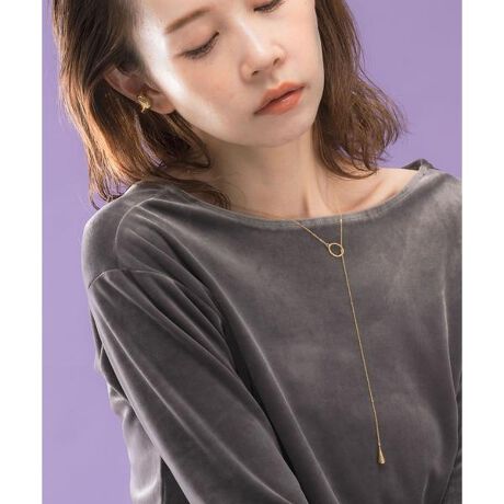 Favoribleで人気のY字型ネックレス。今季はトップに涙型を施し、縦長シルエットを強調したバランス感の良い印象に。中央のオーバルパーツはフラットではなく、少し波打ったようなうねりがポイント。前に垂らしての着用だけでなく、後ろに垂らして大人ニュアンシーなスタイルも素敵です。