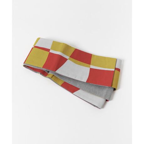 幾何学模様で魅せる、遊び心のあるスクエア柄帯。着こなしに個性をプラスし、モードなおしゃれを楽しめます。差し色としても主役使いとしても優秀で、他とはひと味違う印象に。