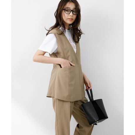 F by ROSSO リネンライクペプラムジレ+タックパンツ