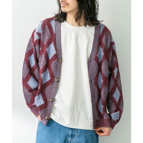 立体的な幾何学模様が目を惹くジャガードカーディガン
