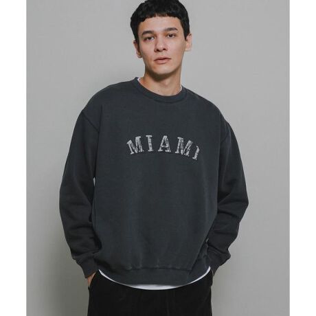 ヴィンテージショップで見つけたようなロゴスウェットをイメージし、今の気分に再現