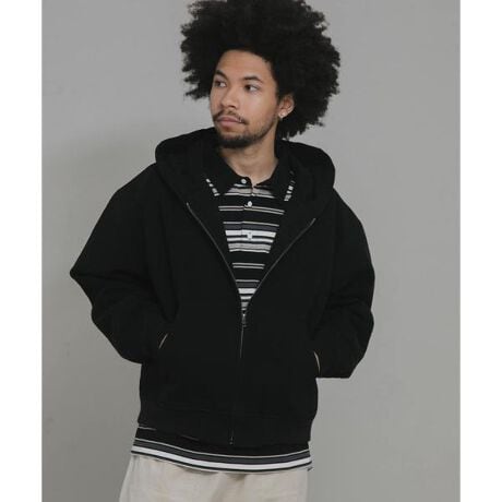 作業服などにも使用されるダックキャンバス生地で作られたフルジップフーディ。
