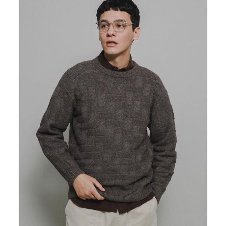 立体感のあるブロックパターンが目を惹くプルオーバーニット