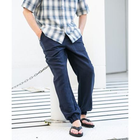 通気性、速乾性に優れたリネン混紡のパンツは、ジメジメとした梅雨や汗ばむ夏場に最適な素材。